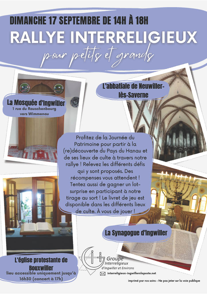 Dimanche 17 septembre, profitez de la Journée du Patrimonie pour partir à la (re)découverte du Pays du Hanau et de ses lieux de culte à travers notre rallye!