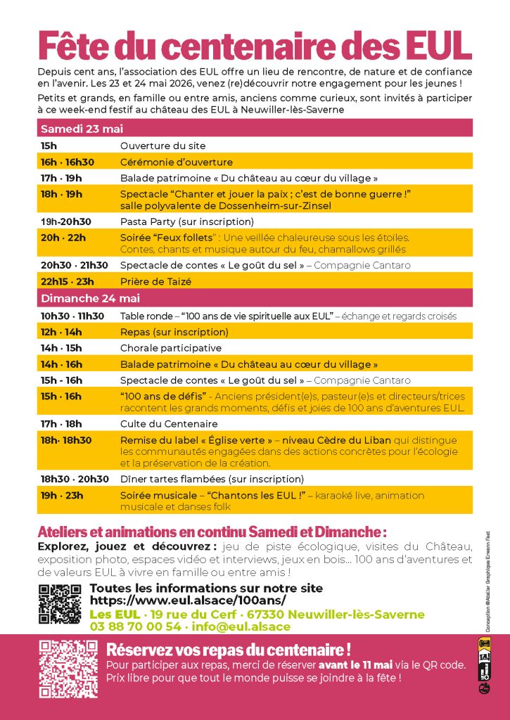 Pour plus d’informations, veuillez consulter : https://www.eul.alsace/100ans/